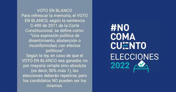 La Nación • 12th November 2021 Elecciones 2022 no se repetirán si ‘gana’ el voto en blanco En Costa Rica, los votos blancos y nulos no se suman a ningún candidato, no se toman en cuenta para declarar al ganador, ni influyen en los cálculos para determinar si se requiere una segunda ronda de elecciones.